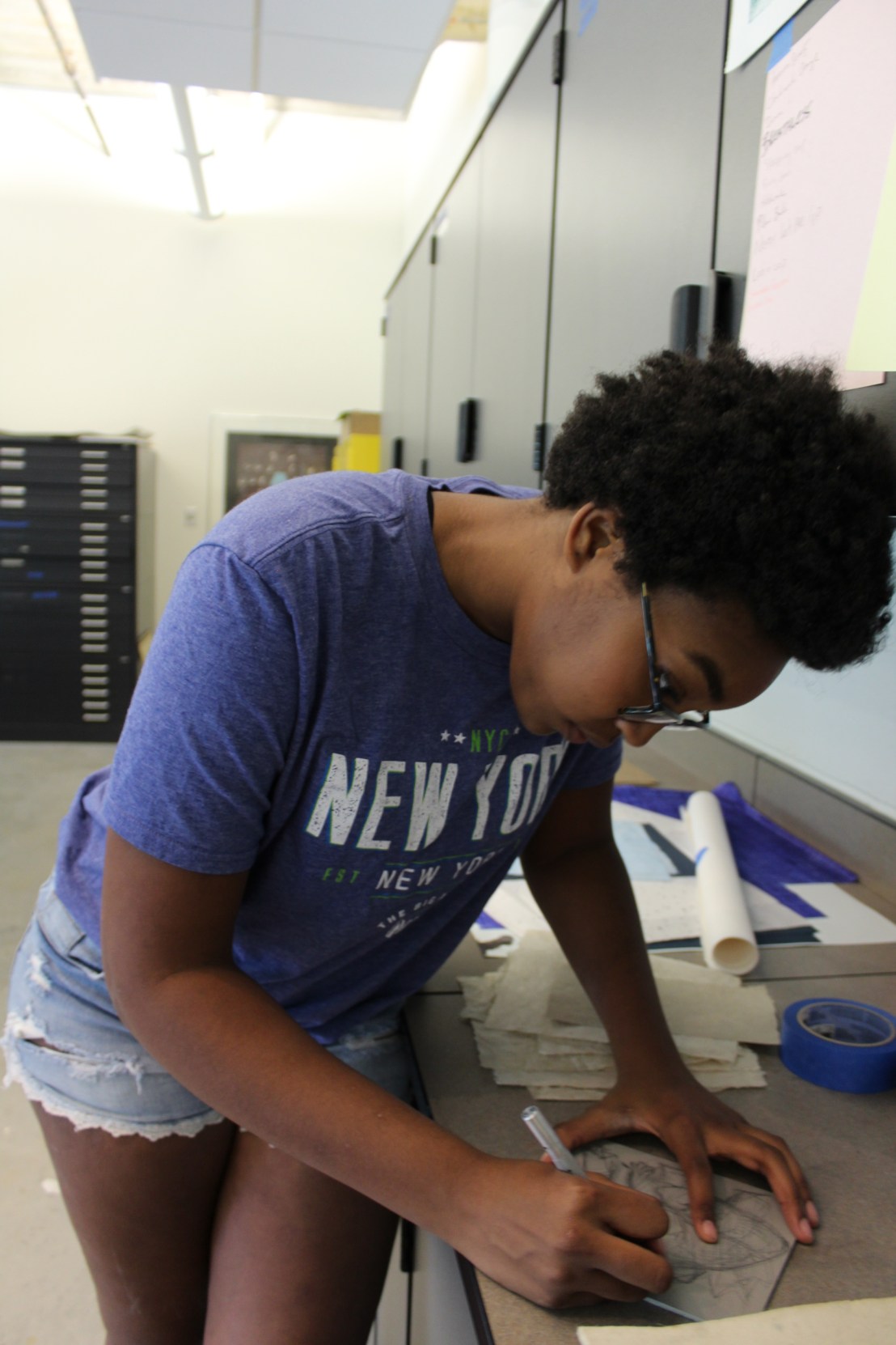 Sophomore Leah Miano is getting ready to use the printing press. PHOTO / ALYSSA EMMETT Share this: Click to share on X (Opens in new window) X Click to share on Facebook (Opens in new window) Facebook Like Loading... Related 2017Photos