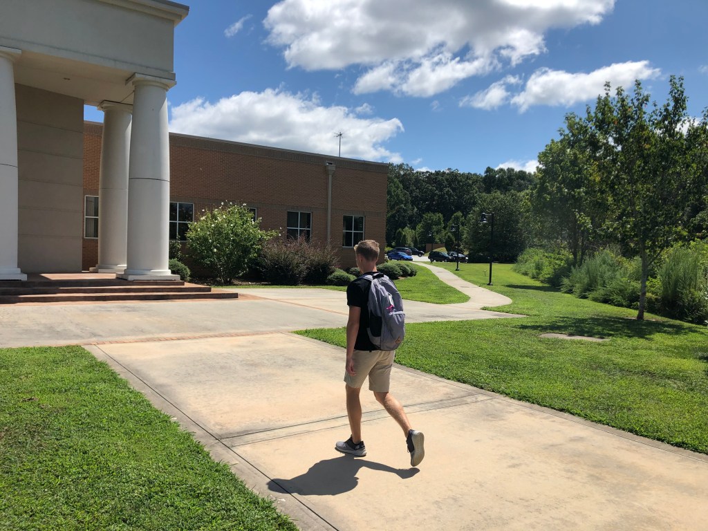 Senior Bryce Griggs heads to class in the Swanson Center.