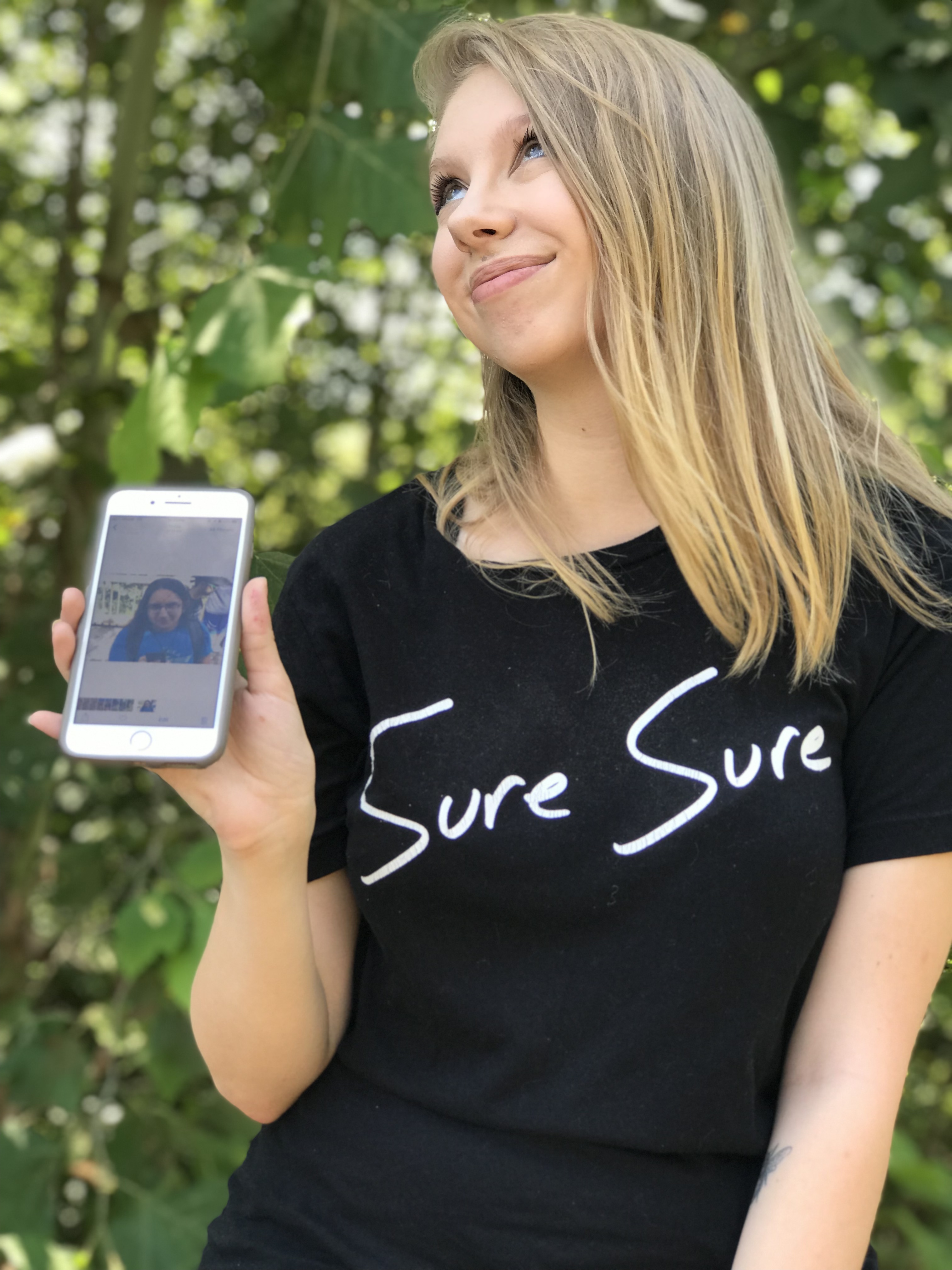 Hadley Cottingham, a junior at Piedmont College, shows off a quirky photo she took of fellow Piedmont student Sage Shirley.