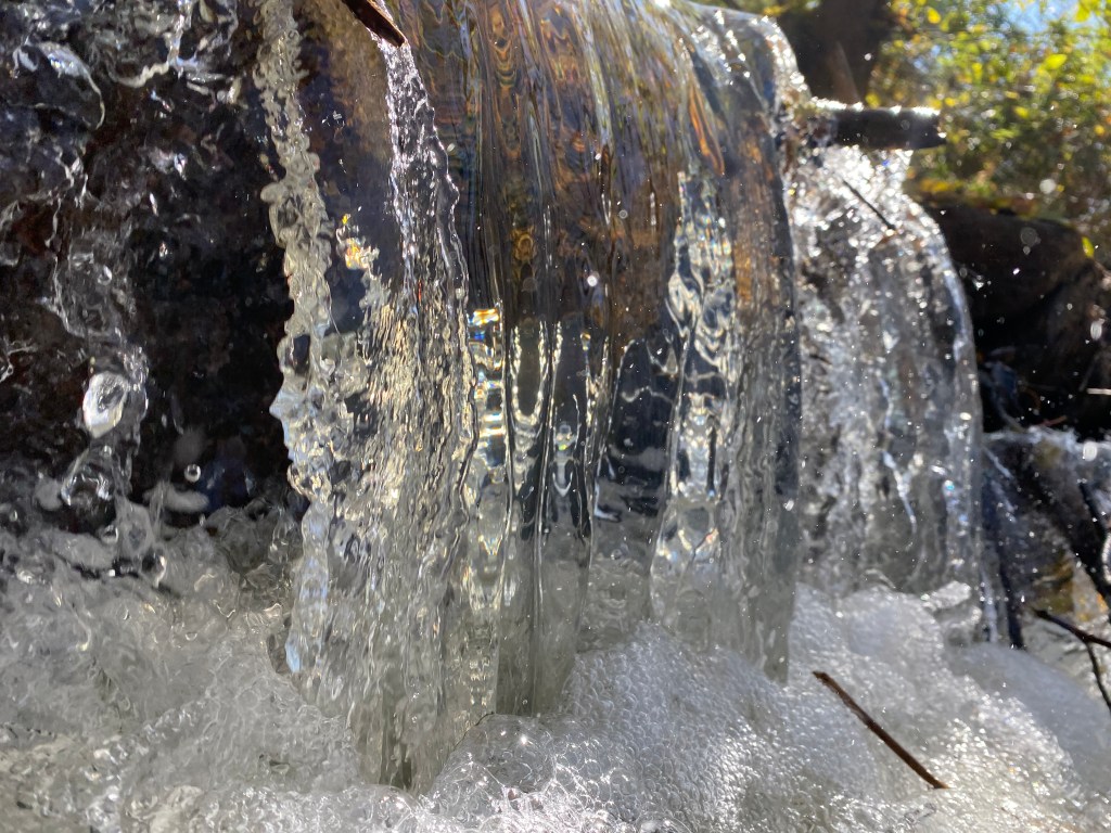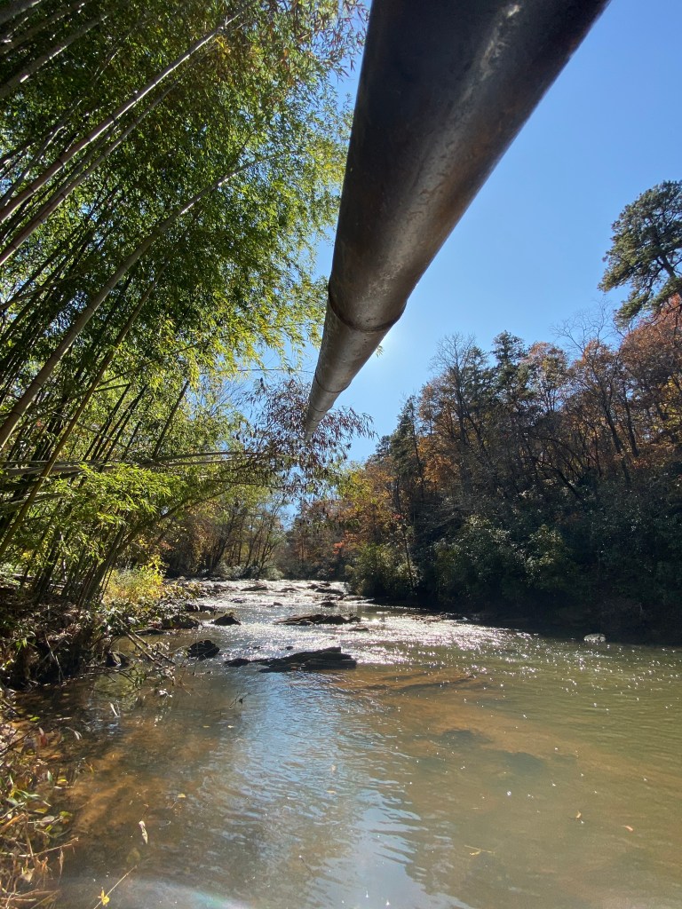 Some water in the Piedmont marsh capturing movement around 1pm.Some bamboo right outside of campus around 11am. This photo captures a wide perspective. Dead bamboo hanging over a river just outside of campus around 11am. This photo uses the dead bamboo is capture depth.