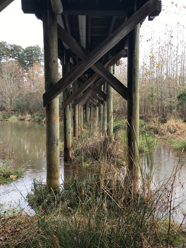 A family of deer crossed the marshlands next to the Swanson bridge along with me. One stopped for a quick photo shoot at 4:46 p.m. It’s rather endearing. This picture captures an animal in its natural environment.The underside of the Swanson Bridge can be just as pretty as the main part, especially at 12:24 p.m. This photo creates depth.At 12:18 p.m. the water is being used as a mini mirror, and the rain droplets hitting the surface of the lake make for a tubular motion shot.