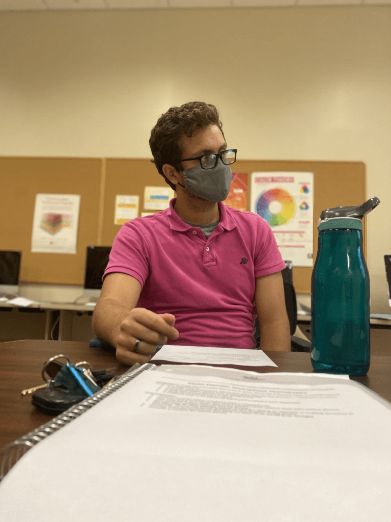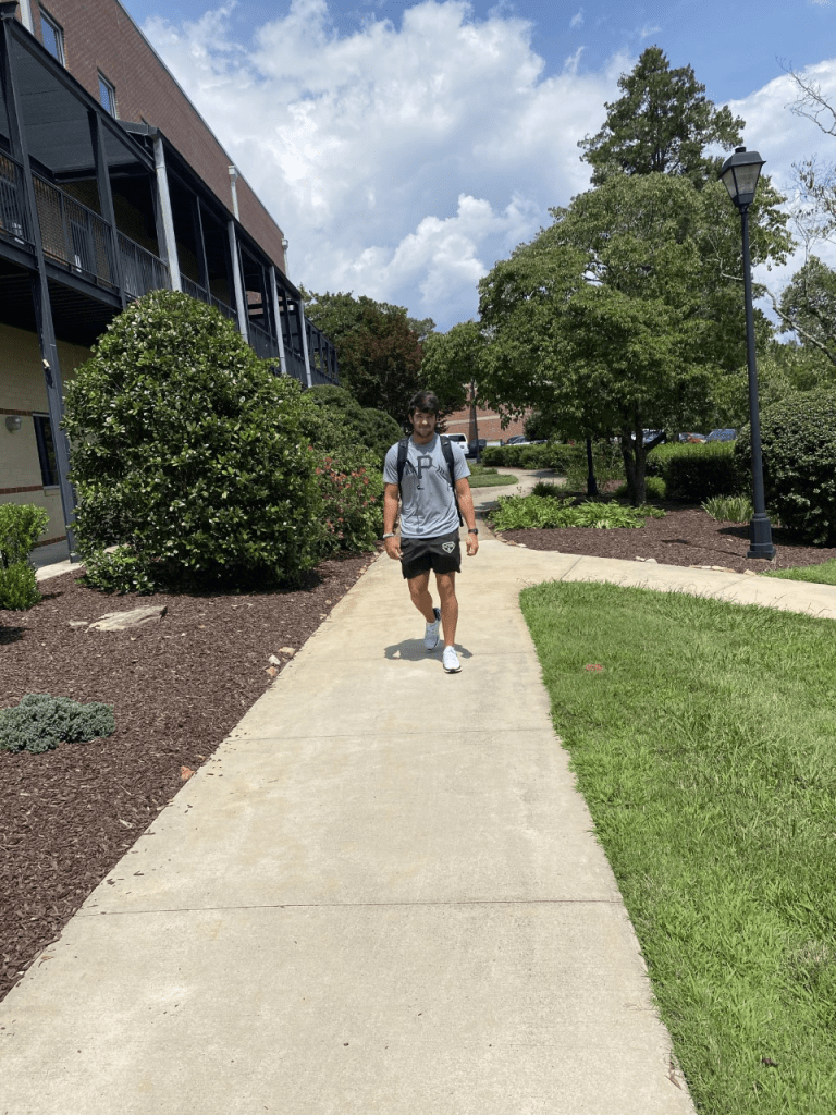 Profile shot of Martin paying attention during lecture.Candid medium shot of a teammate walking to class.Longshot of students leaving class and going to class.Close up shot of nature in front of Daniel Hall.Medium shot of the Student Learning Center.