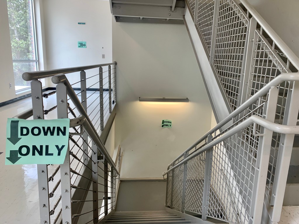 - This is a picture I took walking down the stairs in Stewart. Obviously, one way hallways and staircases are a new addition to the school because of COVID.