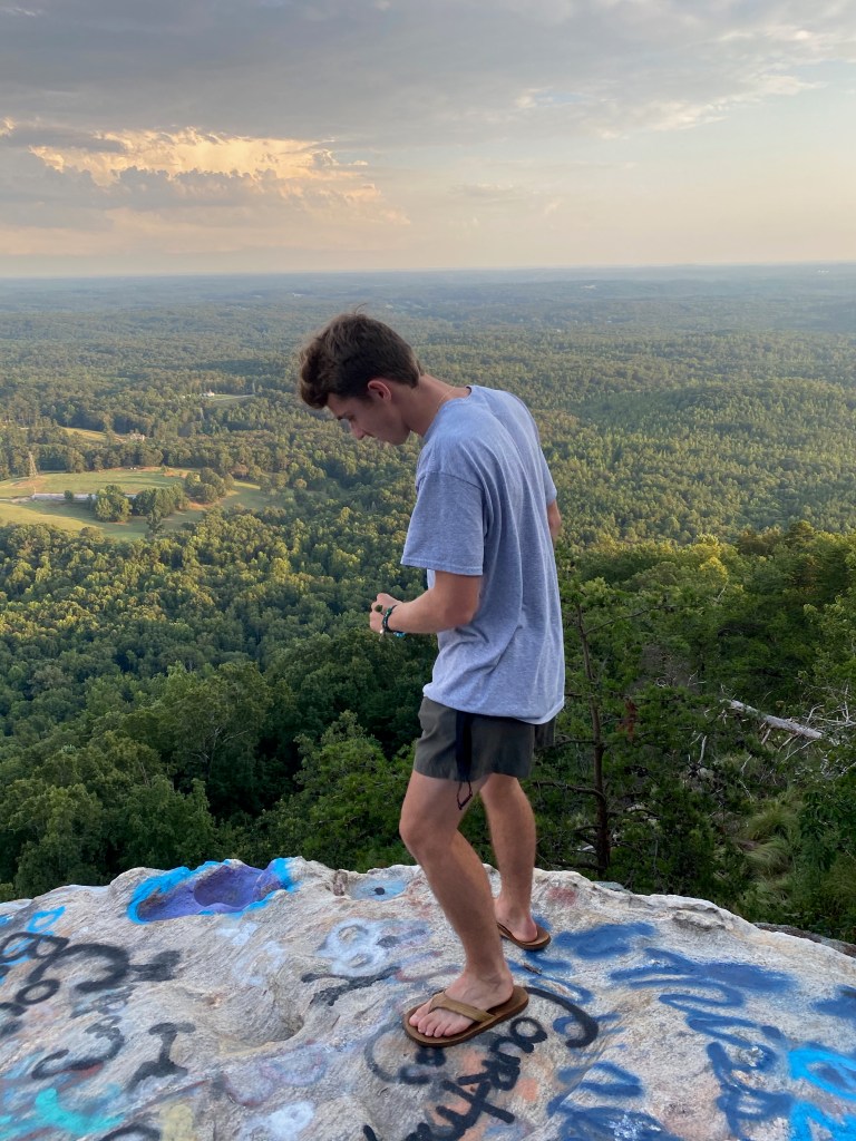 Cutline: Connor Rogers walks around the top of Currahee Mountain, enjoying the beautiful rural view.