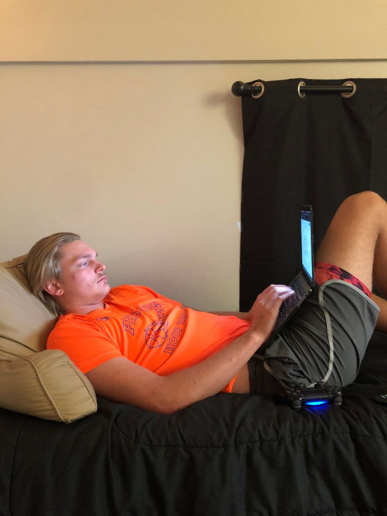 Piedmont College student going through his regular zoom classes instead of attending due to the world wide pandemic
