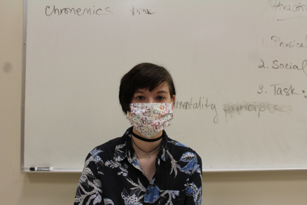 4. Rachel Humble sitting inside of a Swanson Center classroom.