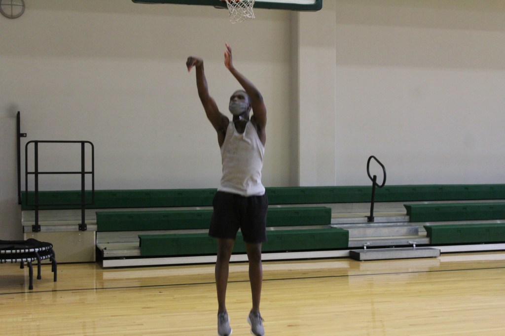 - Christophe Donsereaux (Sophomore) gets some extra shots up before his intramural game that takes place at 8pm. He is one of many guys that comes out every night to destress from school.