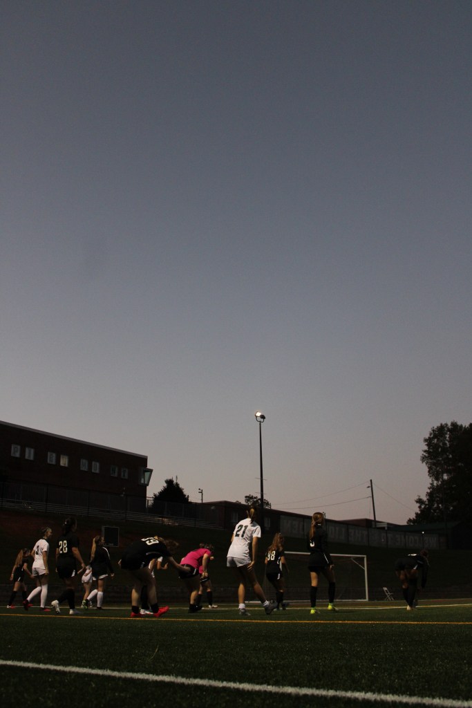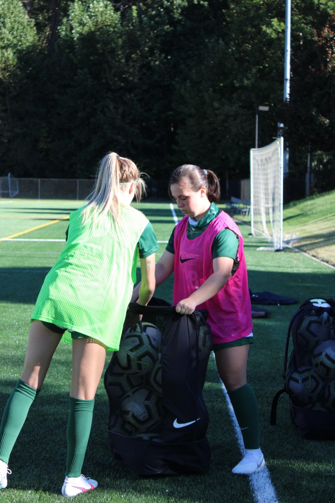 Cut line : Piedmont women’s soccer team stands a proper 6 feet to social distance. Our women’s soccer team has been training successfully amid corona virus.