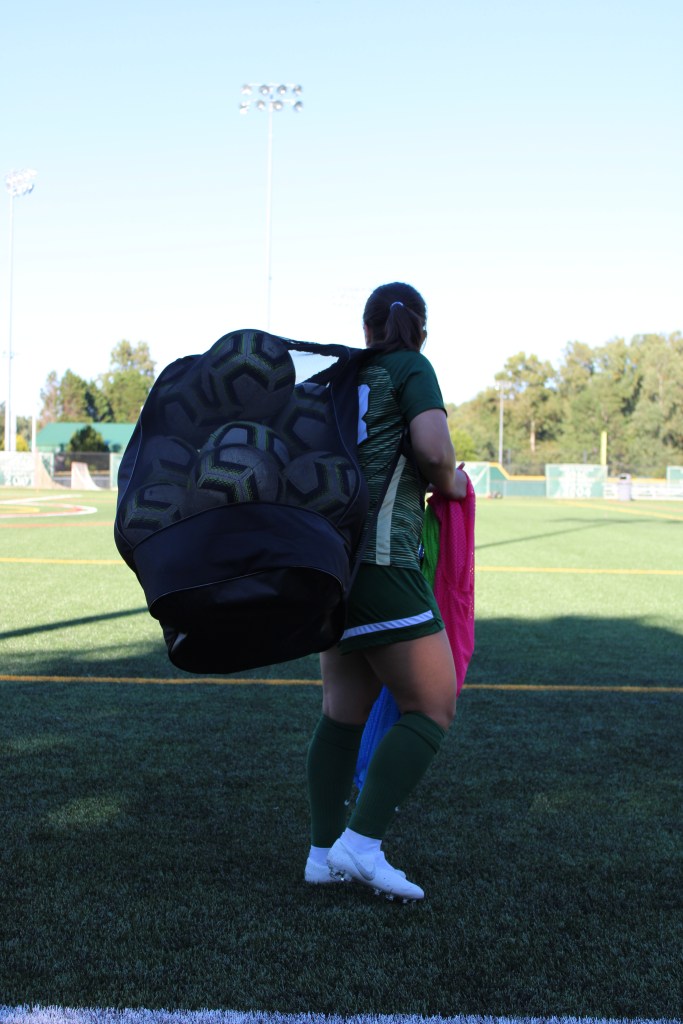 1. As part of being a freshman on the Women’s Soccer Team, Marissa Taghon helps pick up soccer balls off of the field and return them back to the locker room. Every freshman or transfer who comes through the program must do their “duties” by taking care of equipment before and after practices and games.