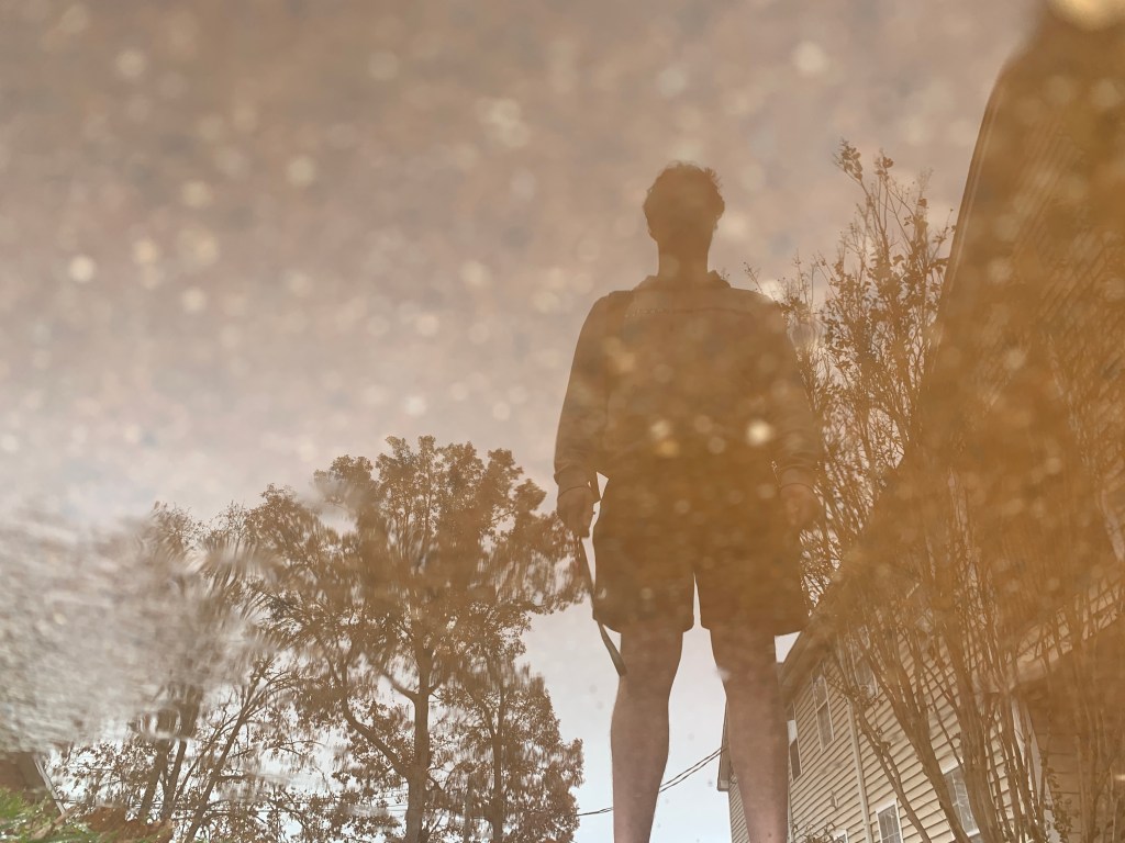 using water as a mirror. taken at 1:25 p.m. in front of johnson residence hall.