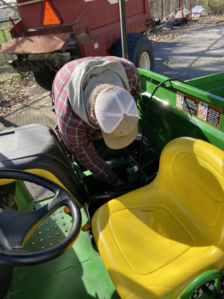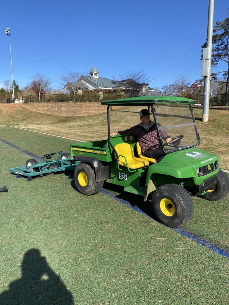 A day in the life of my Coworker Austin Burton. We work for Forsyth County Parks and Recreation. We provide maintenance work for the park in order to keep it running. We are the grounds keepers also. Without us to maintain the park it would turn into filth. We mow the grass, take care of the turf fields, fix equipment, clean the bathrooms, and take equipment we can’t fix to the shop. Just remember, next time you go to the park and want to destroy it, someone works hard to keep it nice for you.