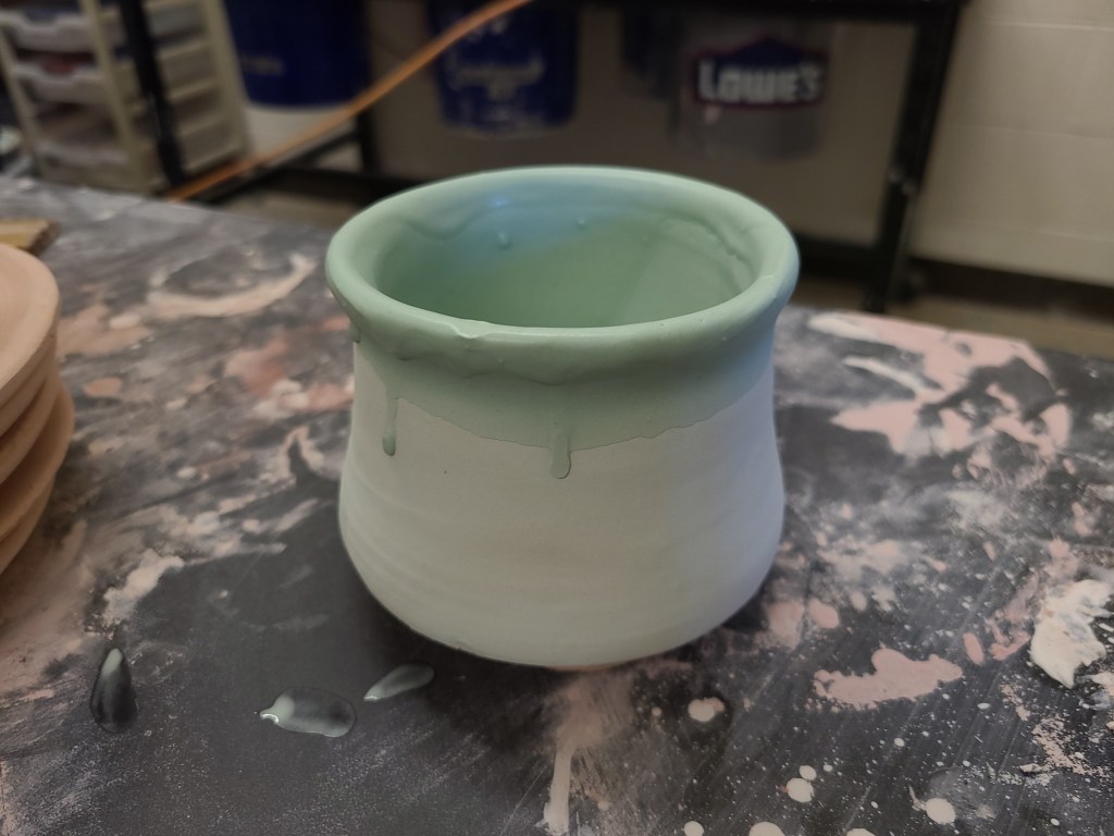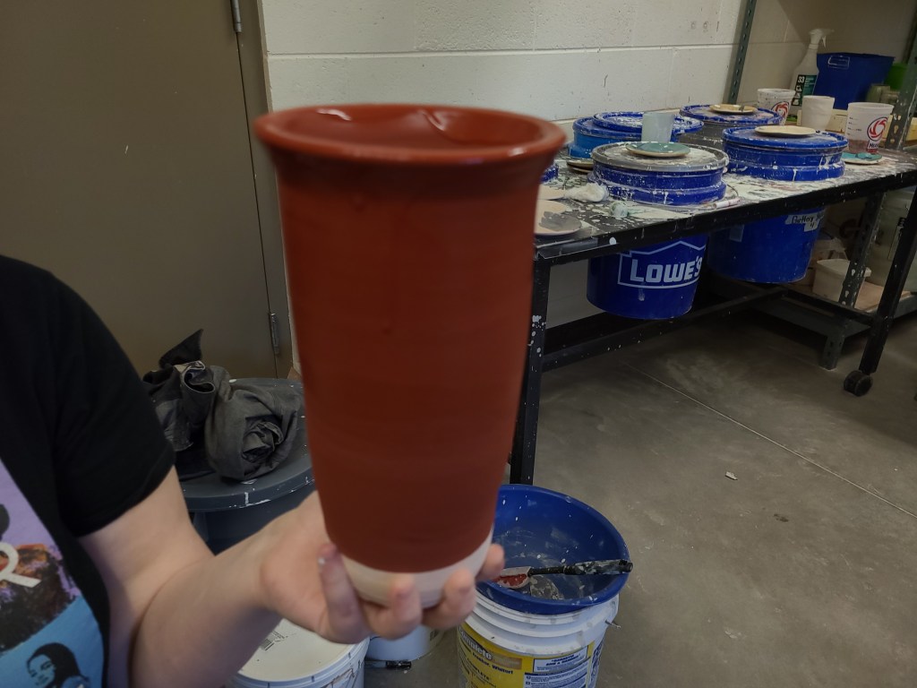 The inside of the vase is left unglazed, excluding the lip, since it won’t be containing food items. This is done to save on glaze and as an aesthetic choice.