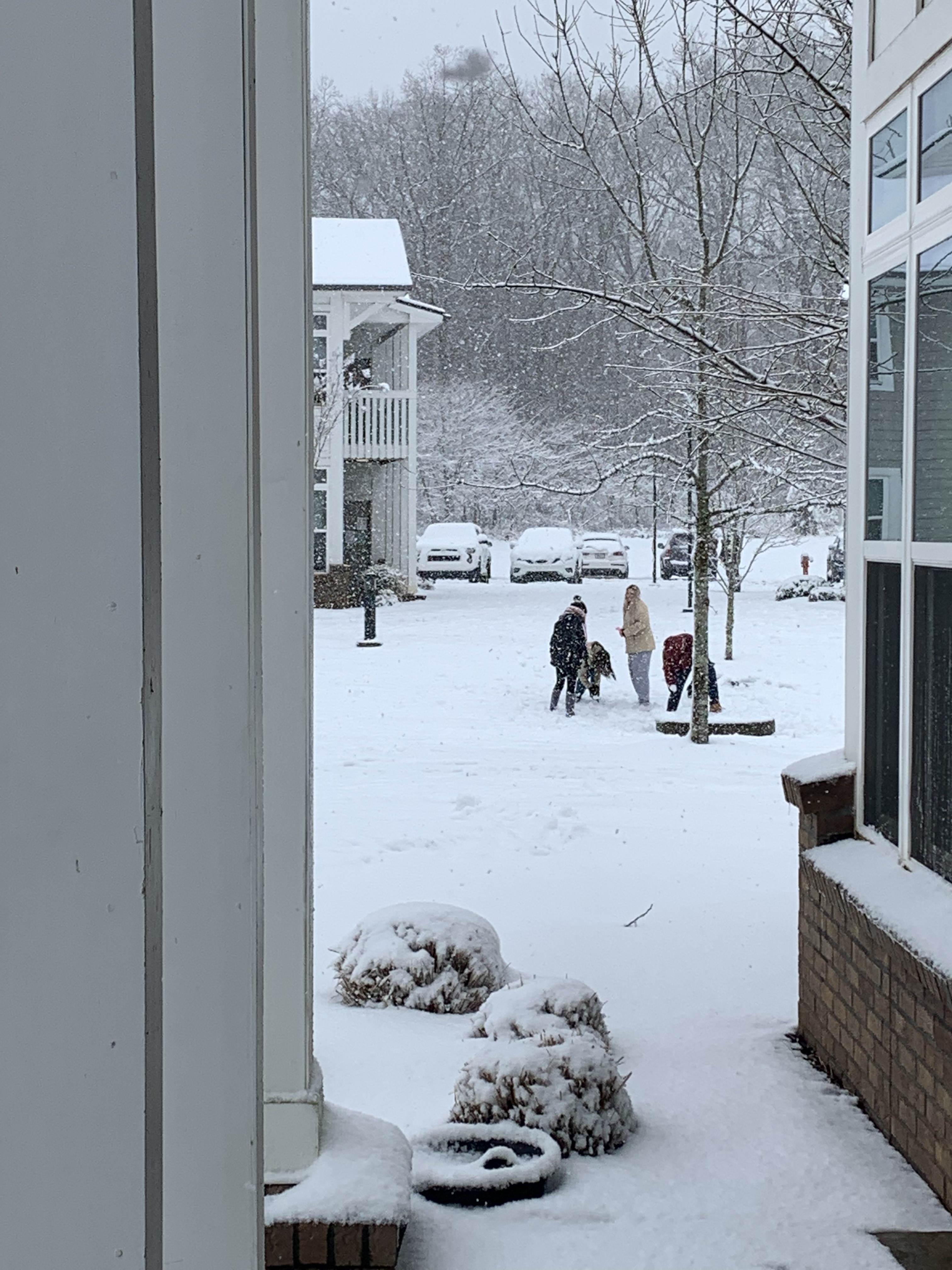 Cutline: Piedmont University students build a snowman at The Village. Students enjoyed the snow over the three day Martin Luther King Jr. weekend. As snow began falling, students began playing since snow is uncommon in this amount for the area.