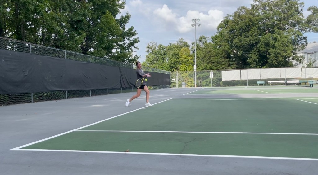 Dakota Wilkes, a student athlete in her junior year at Piedmont University, studies hard on February 2nd 2022 in an on campus computer lab to get her school work done before her weekend tennis matches begin.