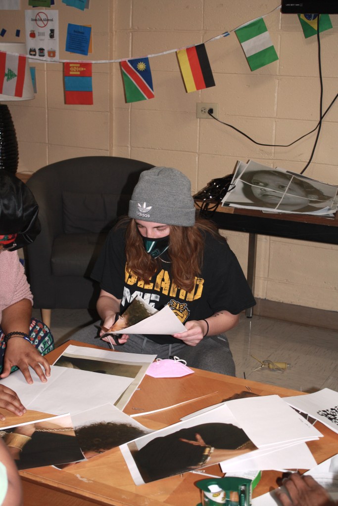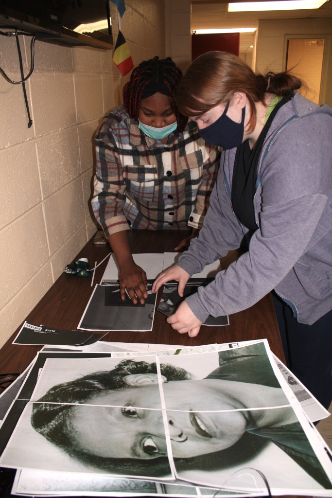 Piedmont student, Madelyn Paris, stepped in to help cut out photos of those in the Black History Hall of Fame. A view of multiple Piedmont students sitting around enjoying each other’s company while working hard to bring this event to life. It took multiple students to help cut out and create this event. Two Piedmont students working together to create life size posters. These posters were hung around the Purcell building for those to admire for the Black History Hall of Fame.