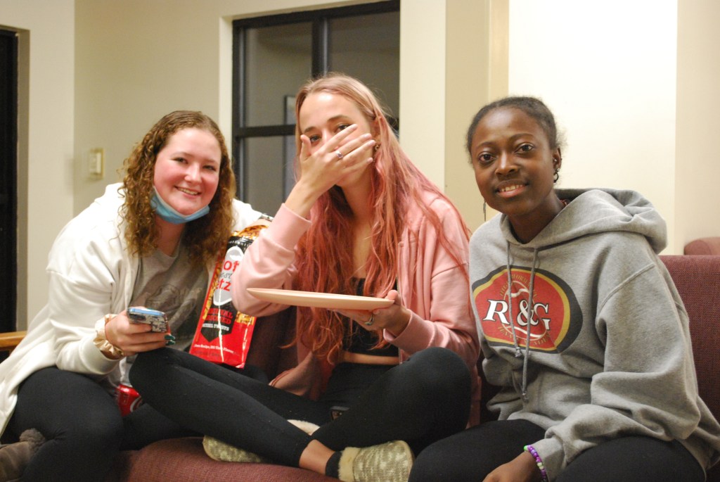 These three ladies came out to showcase their presidential knowledge in the Mayflower lobby on February 21st, 2022 for an RA hosted Presidential Trivia event.