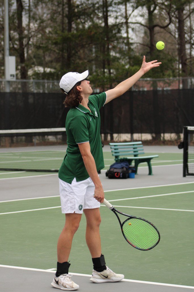 Sophomore, Michael Porcelli playing at three singles went on to make a comeback after losing the first set. Porcelli made a complete turnaround in the second set to take momentum away from the Vikings.