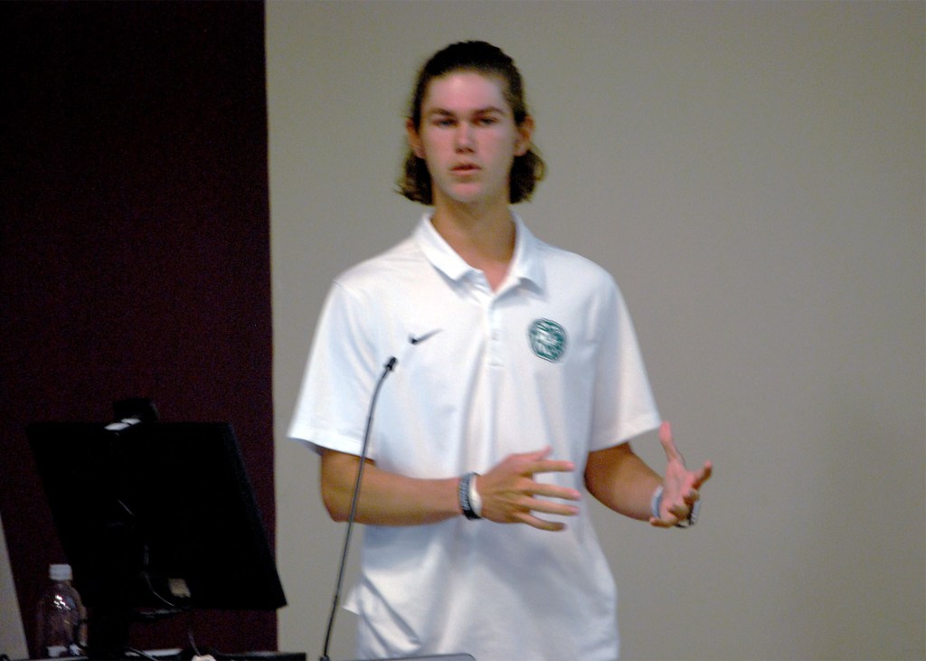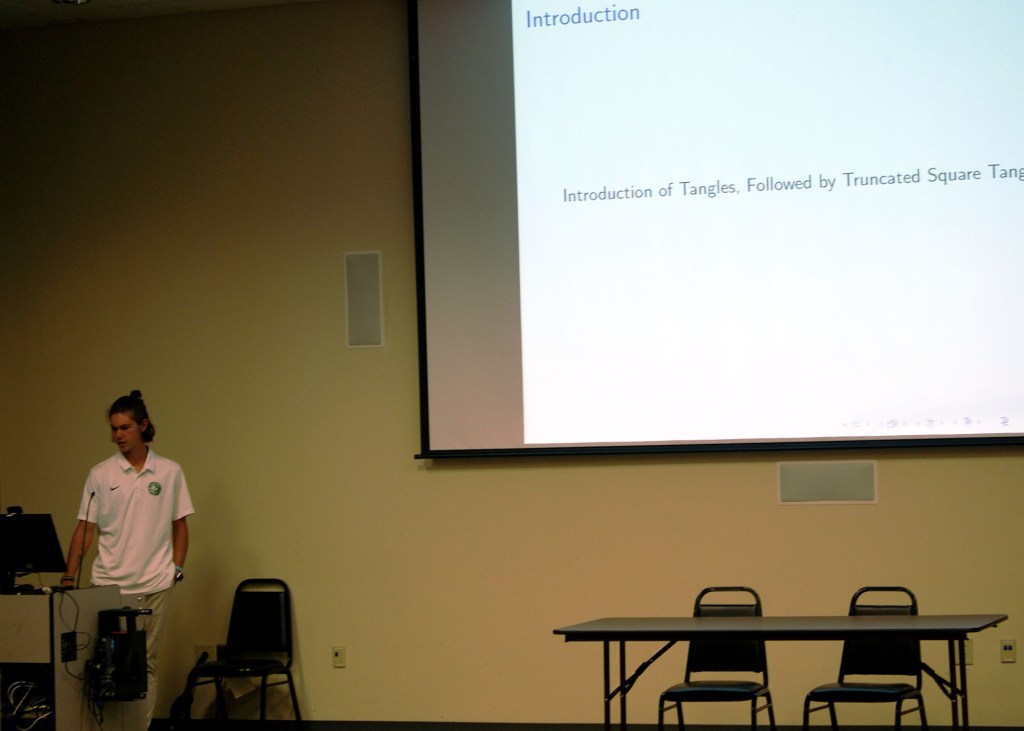 Wednesday, April 6, Piedmont University held its annual Symposium. It is an opportunity for Piedmont students from both the Demorest and Athens campuses to show what they have learned so far in their time at Piedmont.Christopher Bale, a senior Applied Mathematics major at Piedmont University, gives his presentation in the screening room of the Swanson Center on the Demorest Campus of Piedmont University. His research was on truncated squares.Senior Mass Communications major Caleb Rogers interviews Tyler Goins about his part in this year’s Symposium. Rogers’ group for Audio I interviewed students over the air on Z98.7 FM, the student-run radio station at Piedmont University.