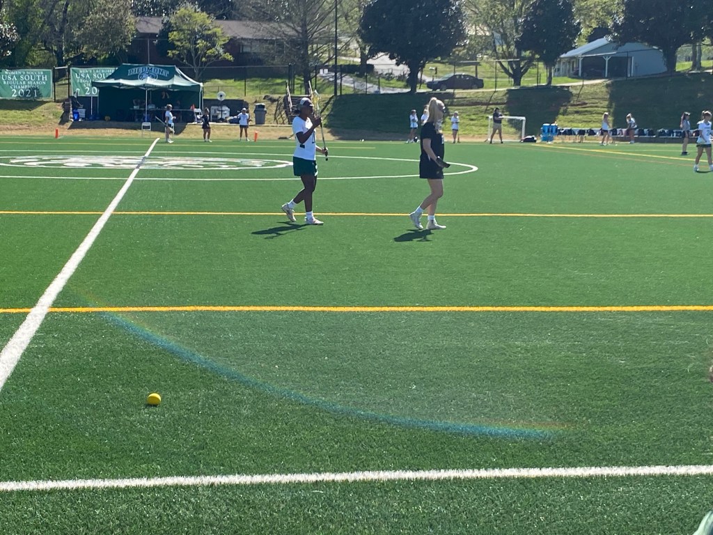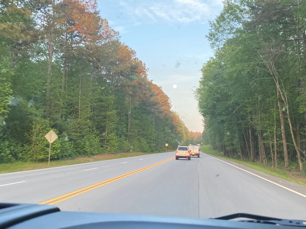 Cierra McFerrin (left) and Pfeiffer defender (right) are waiting for the shooters to come upfield in the second quarter the half. I went with Leo to meet his family in Milledgeville after the lacrosse game and this is one of the views of the long highway we were on. As Leo and i got closer to the mall we noticed that there was a full moon as well as the sun setting. It seemed pretty cool caus ethe sun was still up but you could see the moon so clearly.