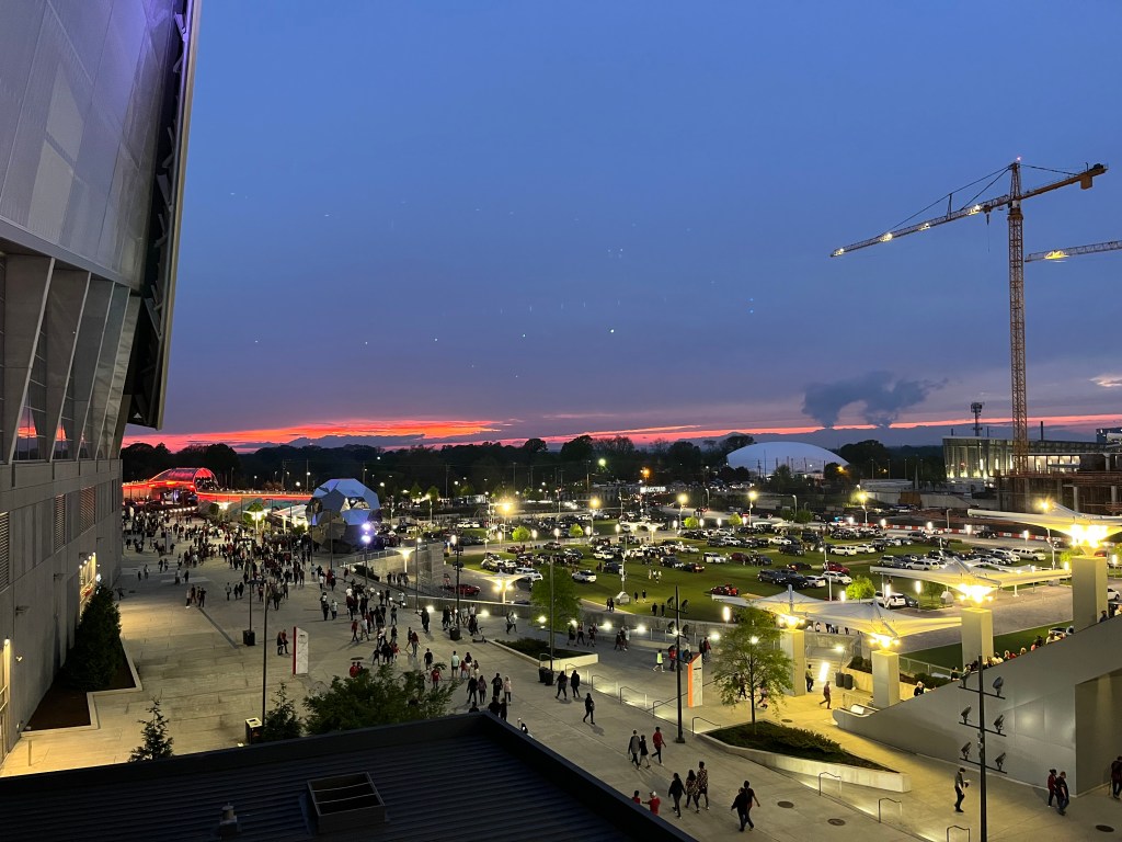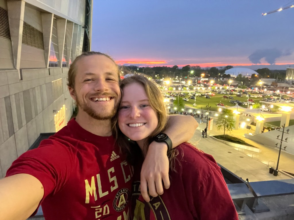For Easter weekend, Cam and I went to an Atlanta United Game. After the game, we took a few pictures overlooking the front of the Mercedes Benz Stadium. We had seats right behind the opponent’s goal. Alec Kahn, the keeper, used to play for Atlanta United before he switched to play for Cincinnati. Cam and Alec have worked together before and were good friends. The view of the grounds and the parking lot was super pretty, especially with the sun setting in the back. On Friday, Cam and I went to Lake Juliette in Locust Grove. He took a photo of some floating moss while I took a photo of him. On Easter morning I went home to surprise my family. This is my dog Ruby, who is almost blind and completely deaf but is always excited when I come home.