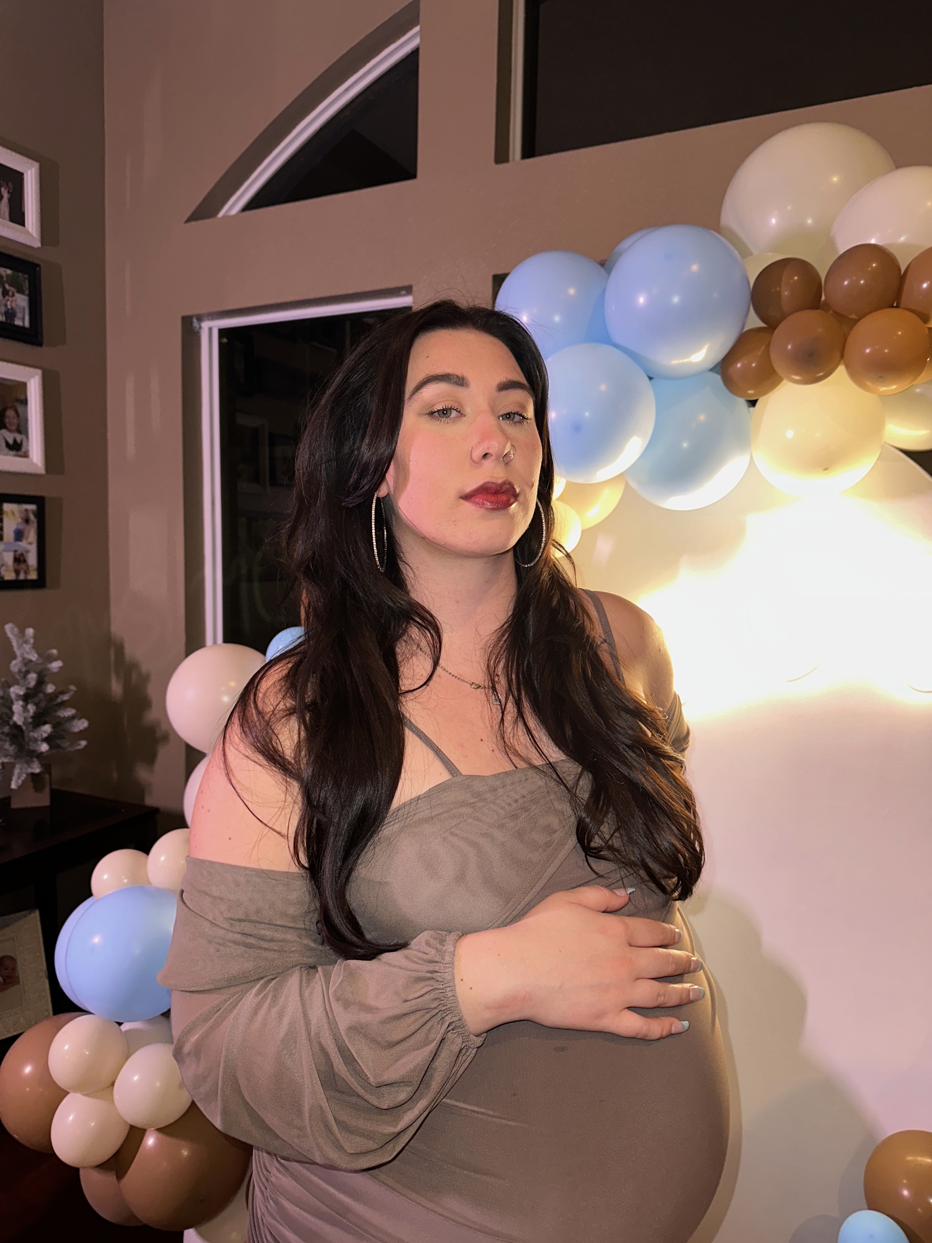 My sister Hannah getting ready for her baby shower, enjoying being the center of attention while everyone takes pictures of her, then finally getting to relax after a stressful weekend.