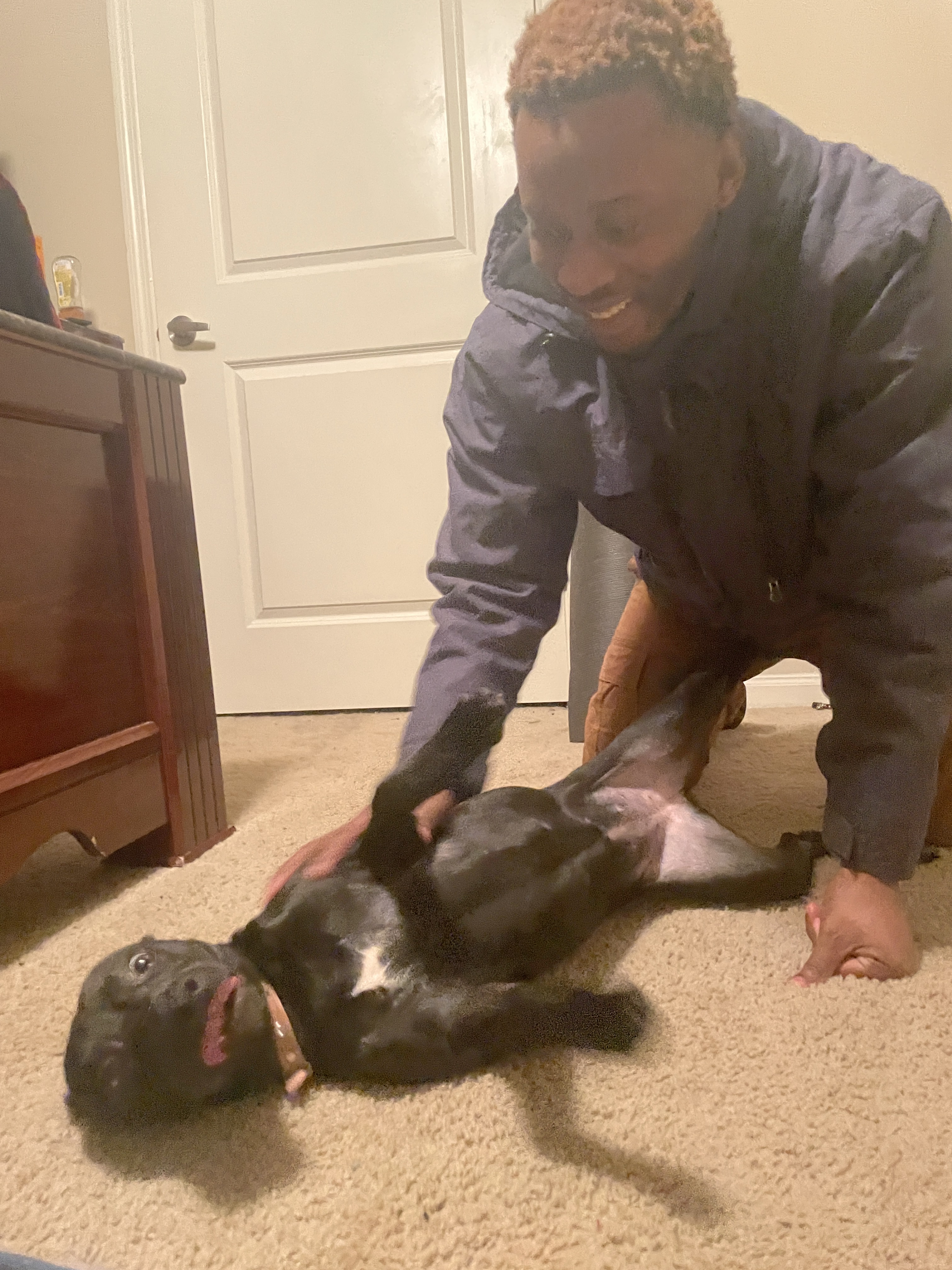 Jabari Williams just finished his long day of school and work. He decides to destress with playing a little Call of Duty and roughhousing with his dog Bella.
