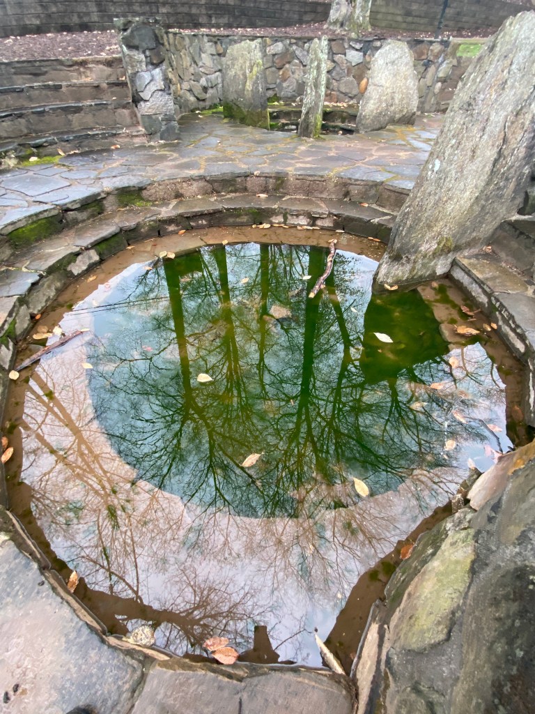 I originally came to Demorest Park because I thought I might find something in the playground, but I forgot that half of the playground is being taken over by the Demorest police station… then I came to the three wells, my first intention was to catch the ripples of the rain drops, but then I realized how clearly you could see the reflection of the trees in the moss.