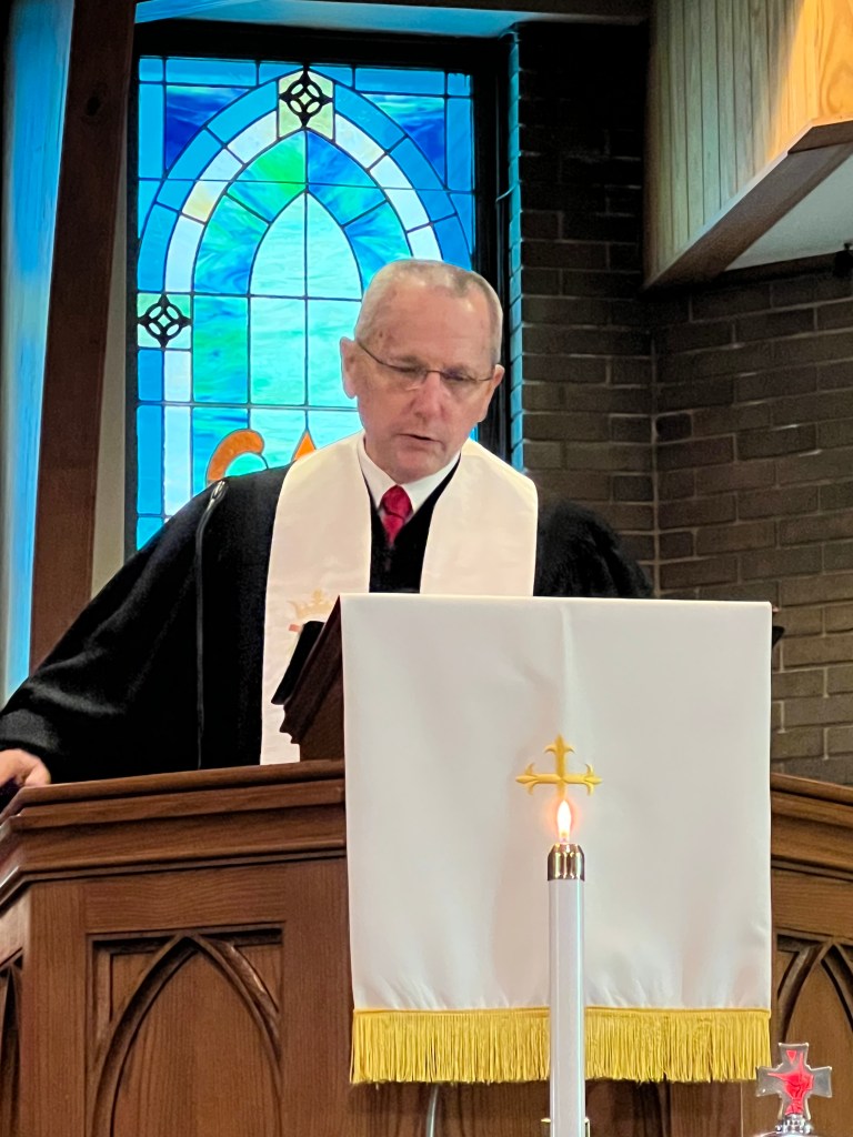 Revered Jeff Cain Senior Pastor of Commerce Presbyterain Church giving the Easter message on Easter morning, on Sunday April 9th at 11am. The message was titled “Our futures are certain and sealed with our risen Lord”.