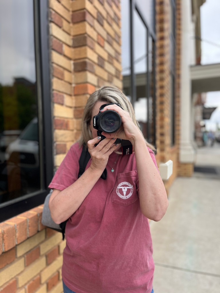 Susan Bittner takes photos in downtown Winder, Georgia. Her oldest daughter plans to graduate in May of 2023, and so she went to take her daughter’s cap and gown photos over the Easter weekend.