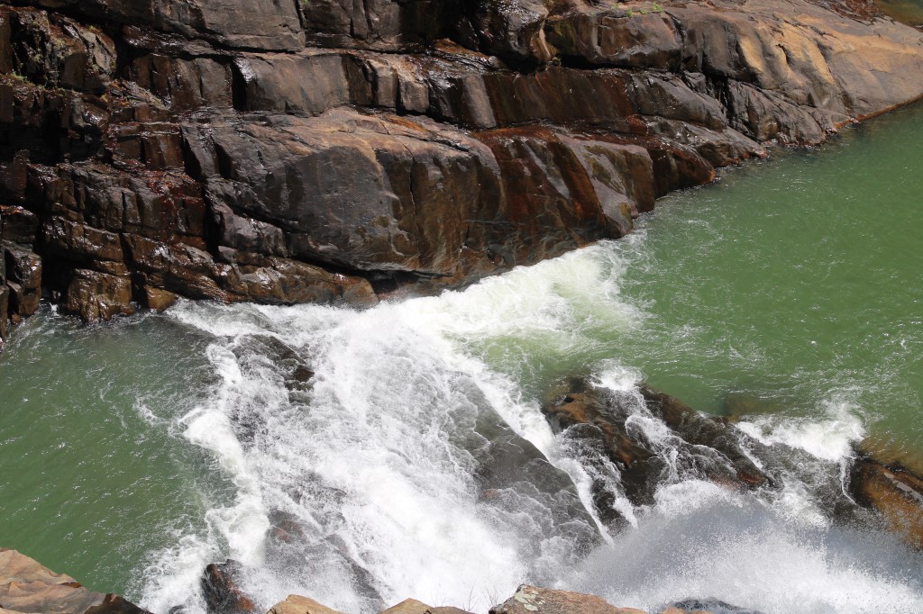 This closer look at the water captures contrast with the rocks and water colors. It captures some of the water movement in the bottom right corner and I like the way the light reflects the wet part of the rocks.