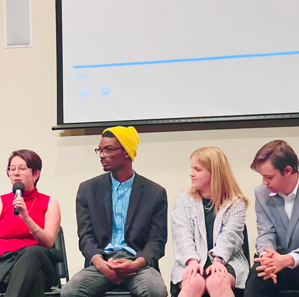 Piedmont University Symposium was held Wednesday April 12th, 2023. Nahomi Solorzano speaking about the short film Masternice647 along with the rest of the film makers Dante Wilson, Matt Kodrowski, and Sophie Haines.