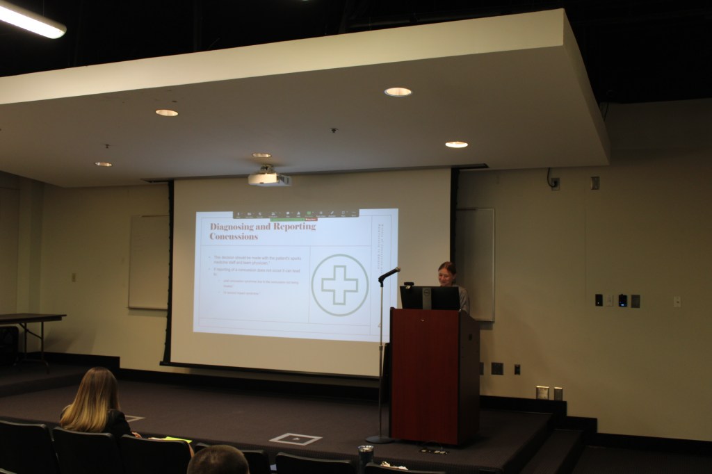 Piedmont student Maddison Cassidy giving her presentation at Piedmont’s 2023 symposium. Her presentation covered the effect os previous concussions on athletes balance.