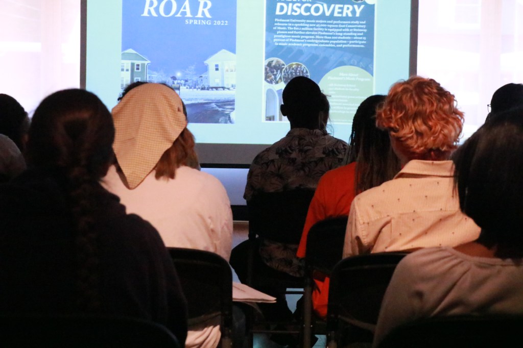 Bella Reulbach presented her Symposium research titled “The Utilization and Study of Amino Acids in Fingerprint Analysis” to guests at the event on April 12. Reulbach’s research was sponsored by instructor Dr. Jennifer Roberts.Students in the audience observed as Samantha Carvallo presented a piece of her 2023 graphic design capstone project in the Mason-Scharfenstein Museum of Art in Demorest, GA. Carvallo’s capstone project is titled “The College of Fine Arts and Sciences Promotional Magazine.” Dr. Joe Dennis spearheaded the popcorn efforts at the “Red Carpet Magic!” capstone event. At the event, Piedmont University film students shared their projects and experiences working on projects throughout the past year.