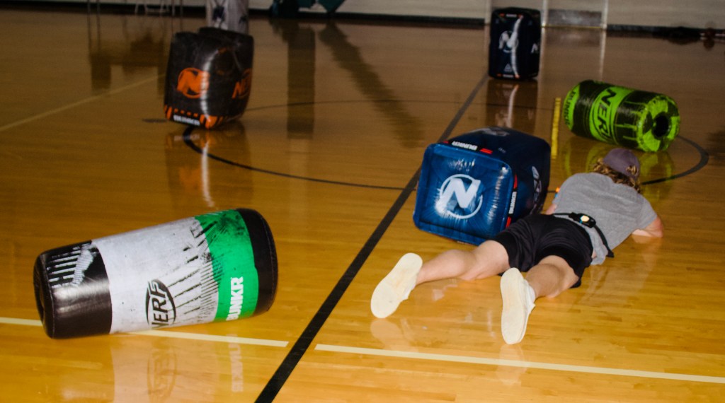 Both red and blue teams were split up into sides on both sides os the gym. These were the hiding options offered for both teams to get away from the opposing team.