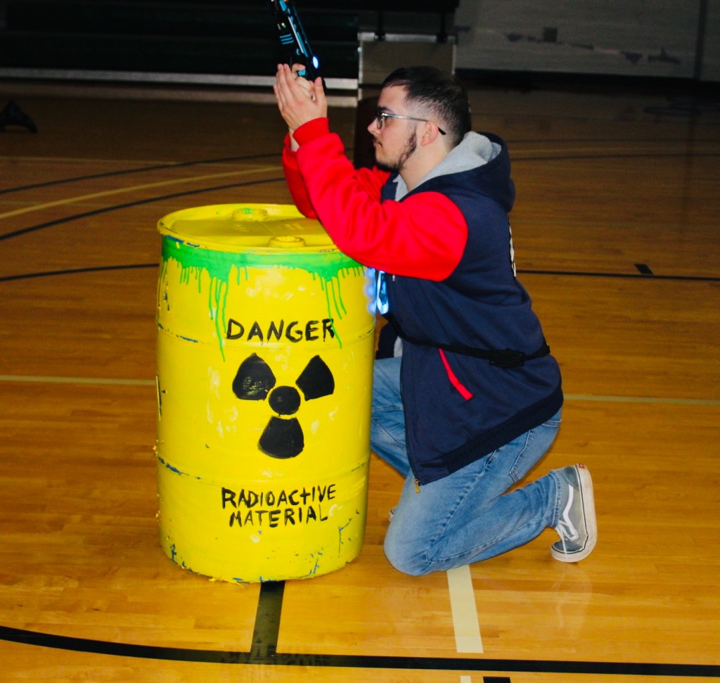 Luke Micham getting ready to make a move at the laser tag event held by Piedmont University Cab on March 22nd 2023.