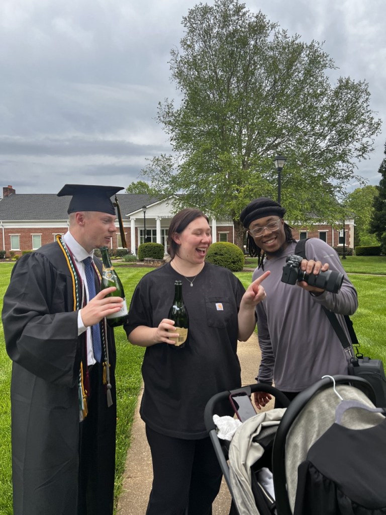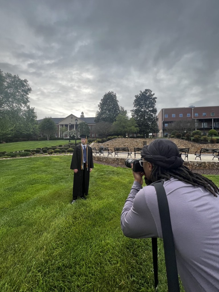 Brandon Ricketts is a cinematographer and portrait photographer and has been doing it since 2016. Brandon has a huge love and passion for photography and does a variety of different sessions. Brandon has shot weddings, graduation pictures, family portraits, and couples photos. Brandon shot my (Kelsey Skendziel) graduation photos and William Richters graduation photos at Piedmont University on April 29th, 2023. I was able to capture what it is like to be a photographer during a graduation photo session, and it was very fun to say the least.
