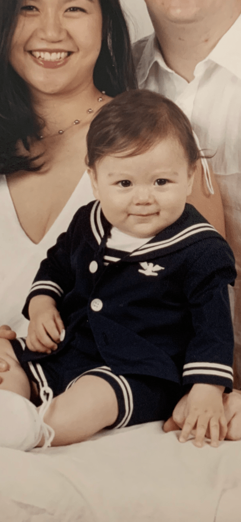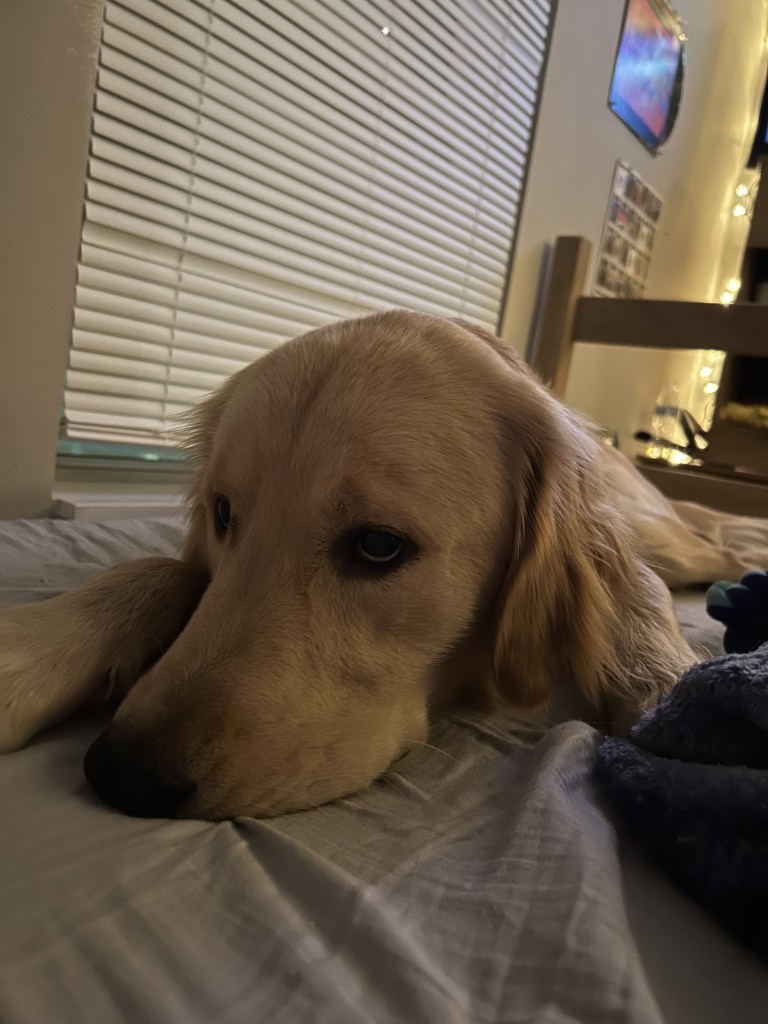 My son. I like this picture because it was my dog rocky’s first time at school with me.