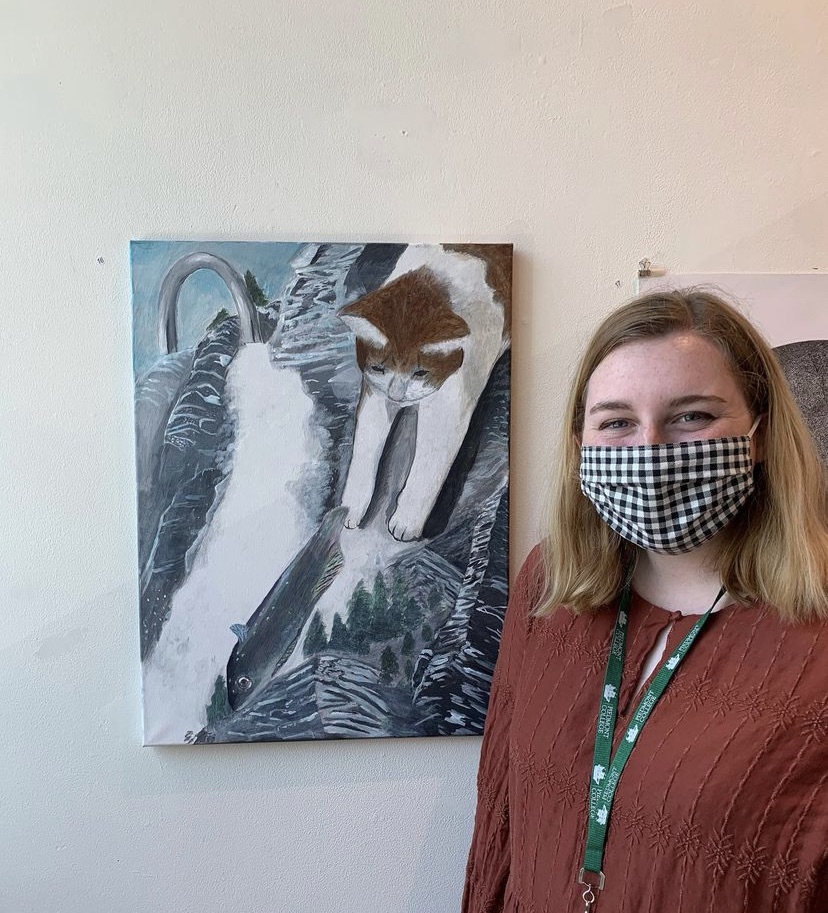 Hi! I’m Elizabeth (Liz) Carter! I’m a senior graphic design major here at Piedmont. I’m a lover of all things creative, and exploring the great outdoors!Over the summer, my family got the chance to visit Maine! Here’s me and my sister at Pemaquid Lighthouse.My faith has changed my life for the better and I’m so grateful for all the blessings God has given me. Here’s a picture from when I got to go to Passion this year. As a graphic designer, I love making and selling fun products like tote bags, buttons, stickers and magnets! Here’s me and my roommate Lakhiya visiting the school bus graveyard in Alto, GA.Chris Renzema is my favorite Christian musician, I got to go with my sister and my friend Madison to see him in concert last year!I focus primarily on digital work as a designer, but I also love 2D art such as painting, drawing, and printmaking. This is a picture of me from freshman year with a painting I did of my cat Oliver. Here’s one of my favorite photos I’ve taken, this was taken on my phone at Tallulah Falls. I like this photo because I enjoy capturing moments in nature, and this is a nice peaceful moment, despite the fact that I had to climb all those stairs. This photo is another one of my favorites, I took this on my camera at Acadia National Park in Maine. This is one of the most popular landmarks in the park, luckily I got to see it on one of the few days it wasn’t raining! I love this shot because my family and I had to carefully climb down through the rocks to get to this angle, but the view was amazing!