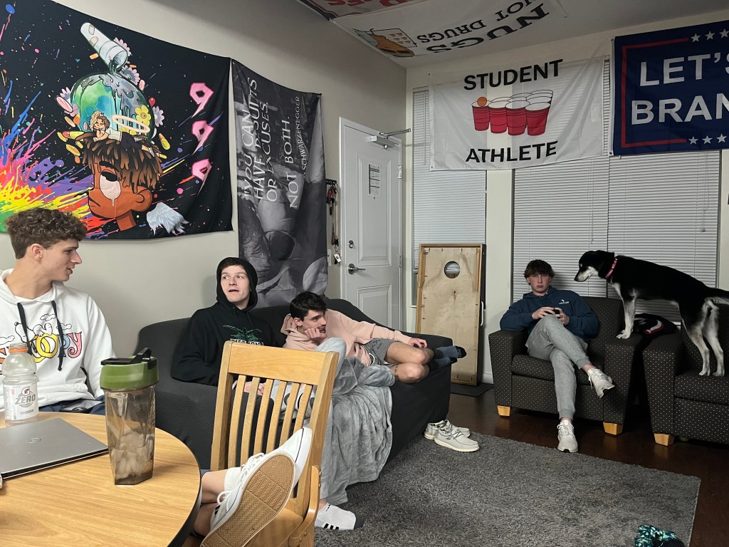 Piedmont University Men’s Swim Team (left to right) Erick Fortner, Ross Coppedge, Jon Brown, and Brandon Randall were watching Super 58 at the Village. They were all bored of the game and started talking about the upcoming conference meet.
