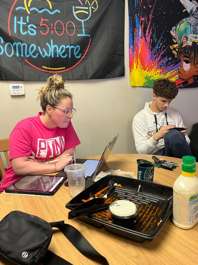 Both Lizzie Arrendale and Erick Fortner were working diligently on their homework during Usher halftime show on Super Bowl Sunday. They finished their homework after halftime, which they didn’t miss much.