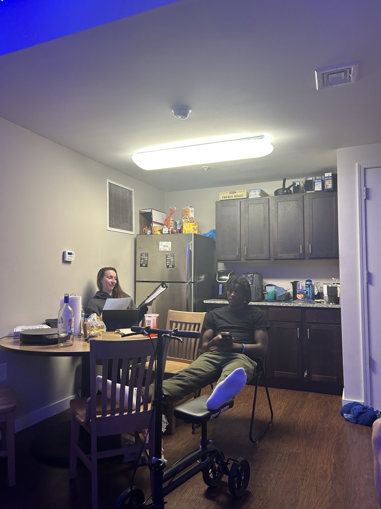 Jeramiah Carter Johnson and Zach Oechsle sitting on the couch intensely watching the game. Bragging rights were on the line as Zach was pulling for the 49ers and Jay was pulling for Mahomes and the Chiefs