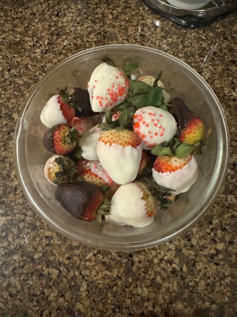 Over the weekend, Olivia Carpenter, was gone in Rome, Georgia for her cousin, Tori Collins, horse competition all day. When she got back she made chocolate covered strawberries and played Mariokart with her other cousin, Jonathan Ayers.