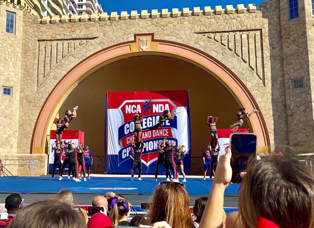 Navarro College takes the floor to compete at NCA College Nationals at Daytona Beach, Florida.