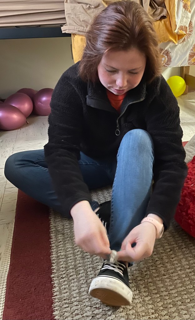 Senior Mass Comm Major, Ella Cain gets ready for work for the day.