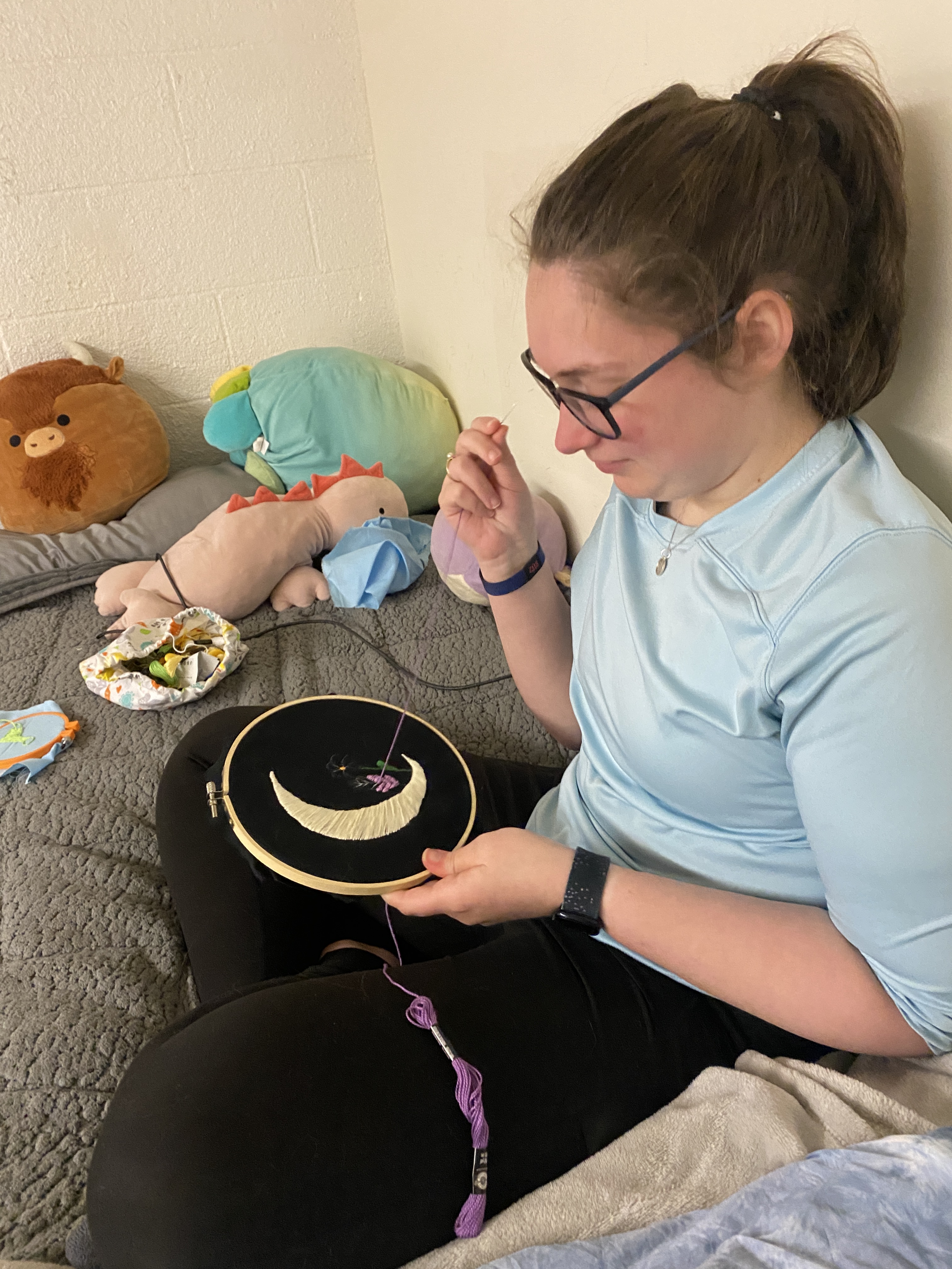 Mary Beall is a Sophomore double major in neuroscience and psychology with a minor in theatre and concentration in tech. She loves embroidery and training her dog Everest, who is working up to be a medical alert service dog.
