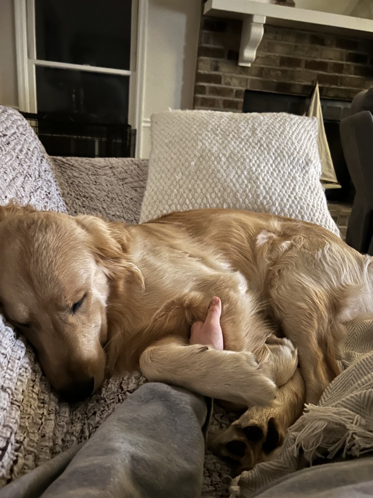This is my dog Rocky, I got him as a puppy last year but he has to live at home with my parents during the school year. I always look forward to seeing him and spending time with him when I go home.