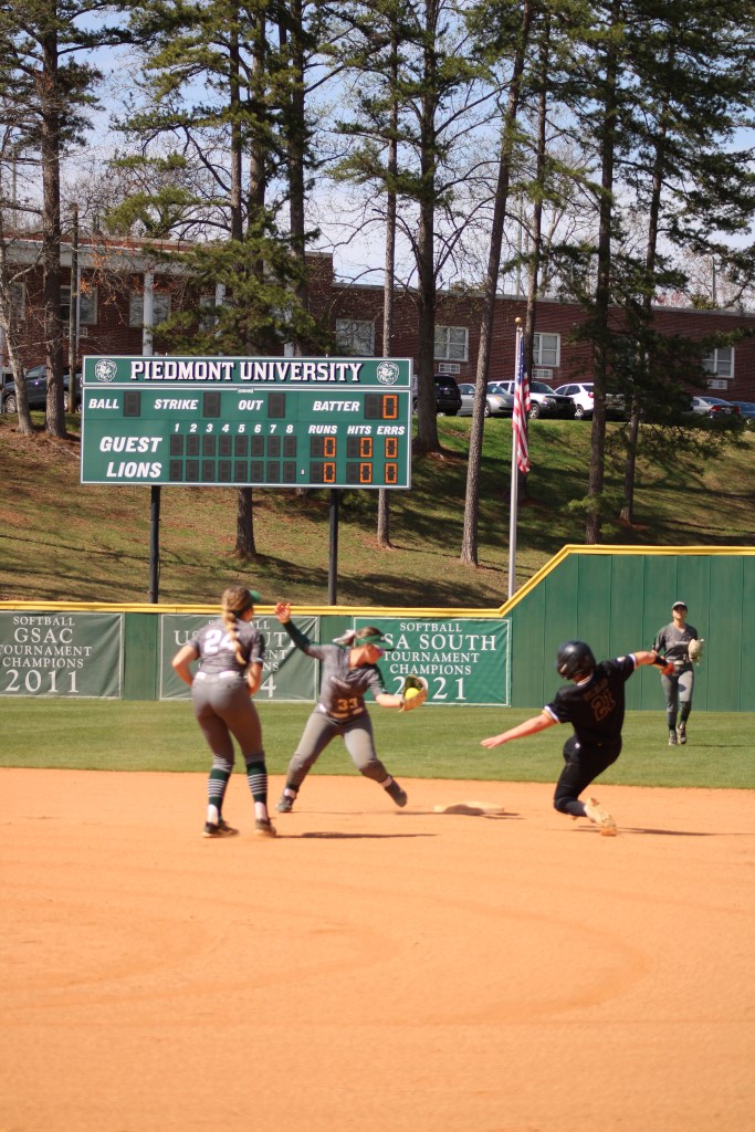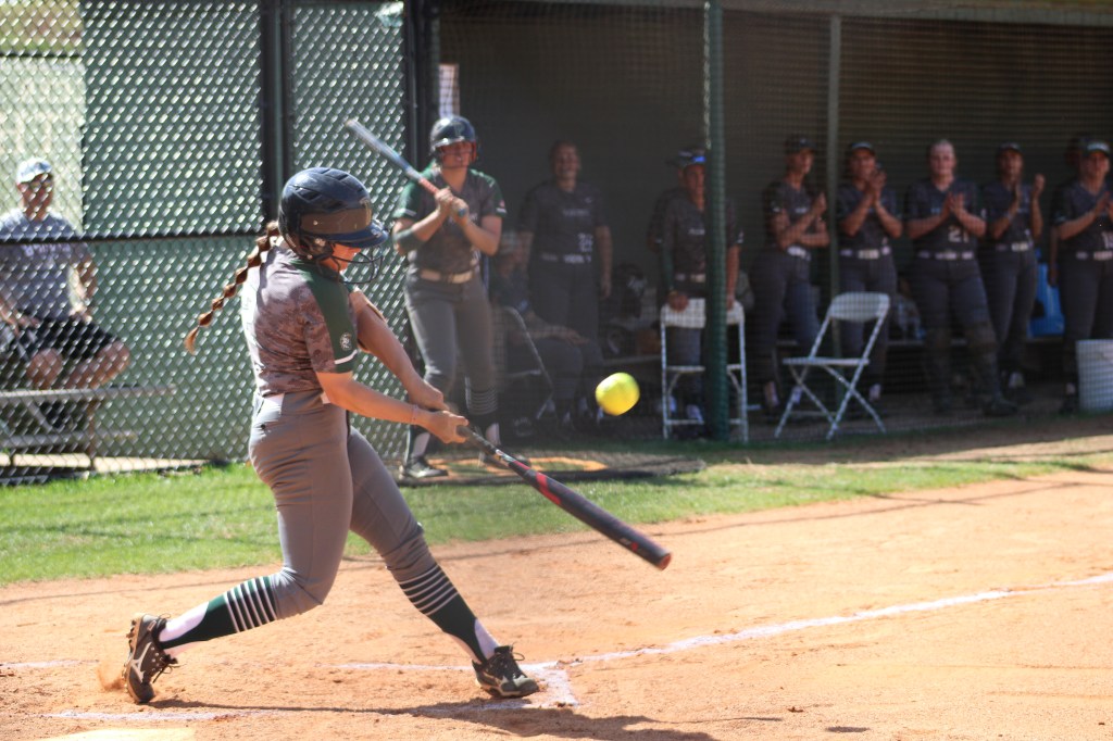 Kaitlin Isley, third basement and graduate student makes contact with the ball to result in a pop-up out.