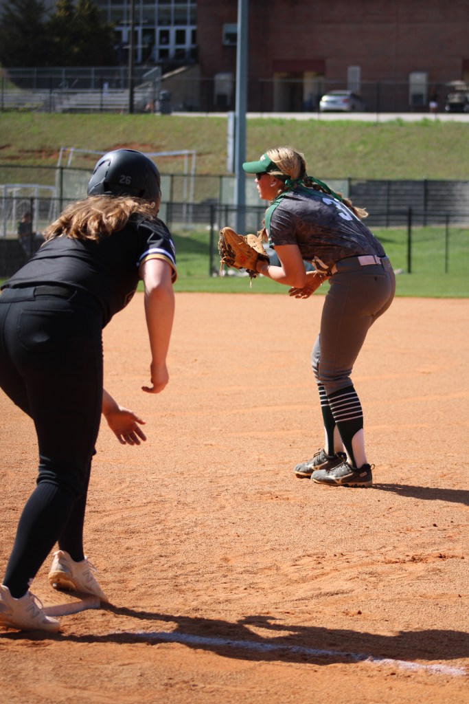 Senior first baseman, Kara Taylor waits for the next pitch.