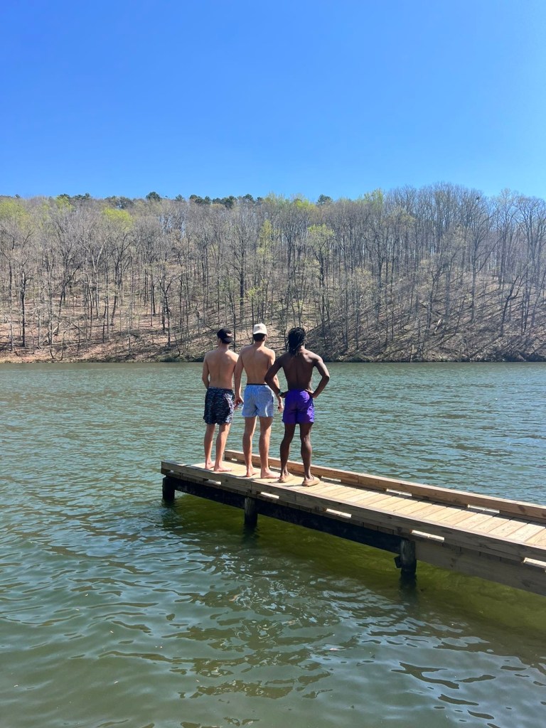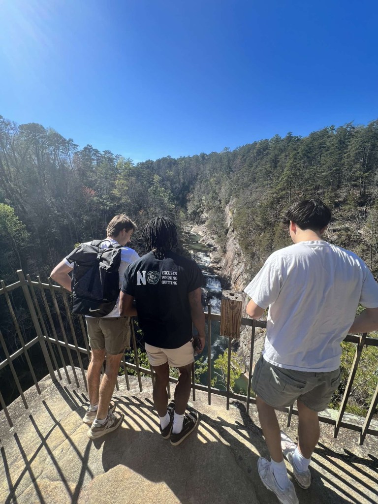 Me, Fisher Dardin, and Silas Mulligan are looking at the view after a long uphill hike.