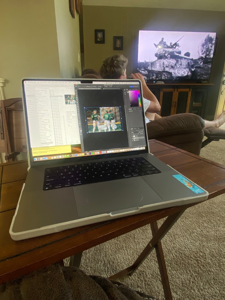 After eating Easter Lunch, I sat down for way too long to edit baseball photos. This was from their past few games against Belhaven. My boyfriend Dalton was watching a history show and everyone was digesting their food.